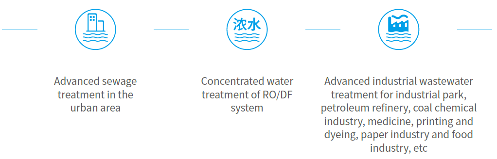 The catalytic ozonation is a process that the ozone is converted to hydroxyl radical (·OH, oxidation potential 2.80V, ranking only second to fluorine) with stronger oxidizability at ambient temperature and pressure to further oxidize and decompose organic pollutants in water, or break macromolecular organic pollutants into small molecules by oxidation to improve the biodegradability of the wastewater. Compared with the similar products in the market, which are featured with low efficiency, easy dissolution and instability, ozone-catalyzed oxidation catalyst developed by OriginWater, with independent intellectual property rights, is featured with strong adaptability, high removal rate, short retention time, low operating cost , etc. Thus, it is in leading level in the industry.