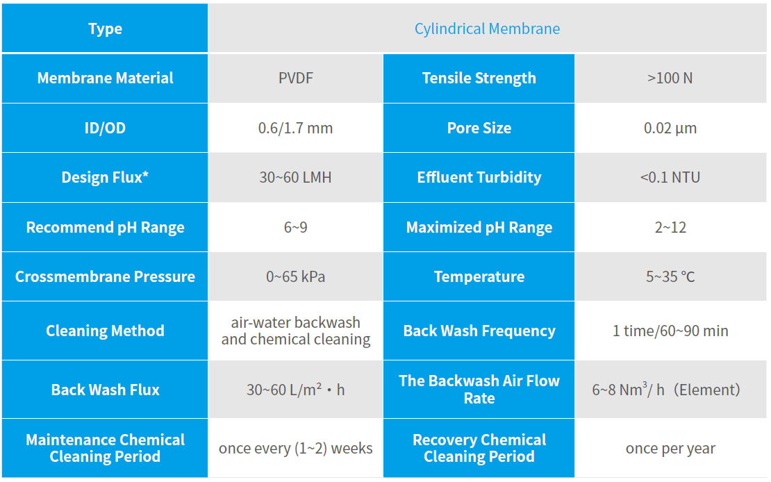 Easy cleaning and maintenance: Due to composite hydrophilic modification technology, the membrane be preserved at dry state, and it is convenient to be stored, transported, cleaned and maintained;