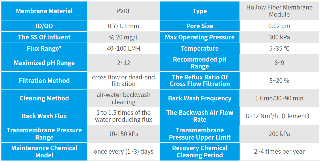 Notes: (1) *Treatment capacity with water temperature of 10℃ ;